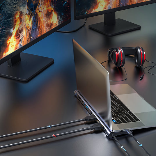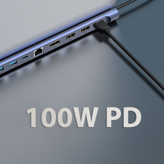 With a power delivery capacity of up to 100W according to the PD 3.0 standard, the docking station allows you to work and charge your laptop simultaneously. The Gigabit Ethernet port supports 10/100/1000Mbps for fast internet connections.