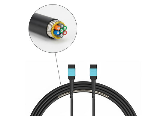 Additionally, the fiber optic cable is armored, providing better protection against kinking and mechanical stress. This ensures greater safety during installation and reliably protects the sensitive optical fibers even in challenging installation situations.